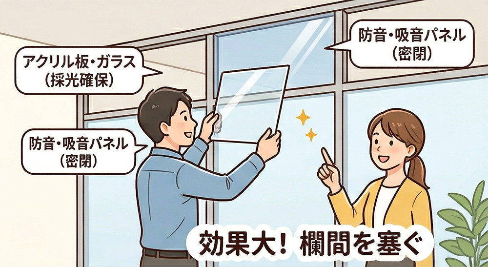 パーテーションの音漏れ対策|欄間・隙間を塞いで防音性能を高める方法